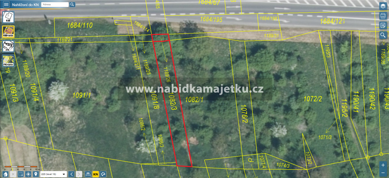Přístup k pozemkům: Pozemky jsou přístupný z krajské komunikace a přes pozemky cizích vlastníků bez úpravy smluvního vztahu